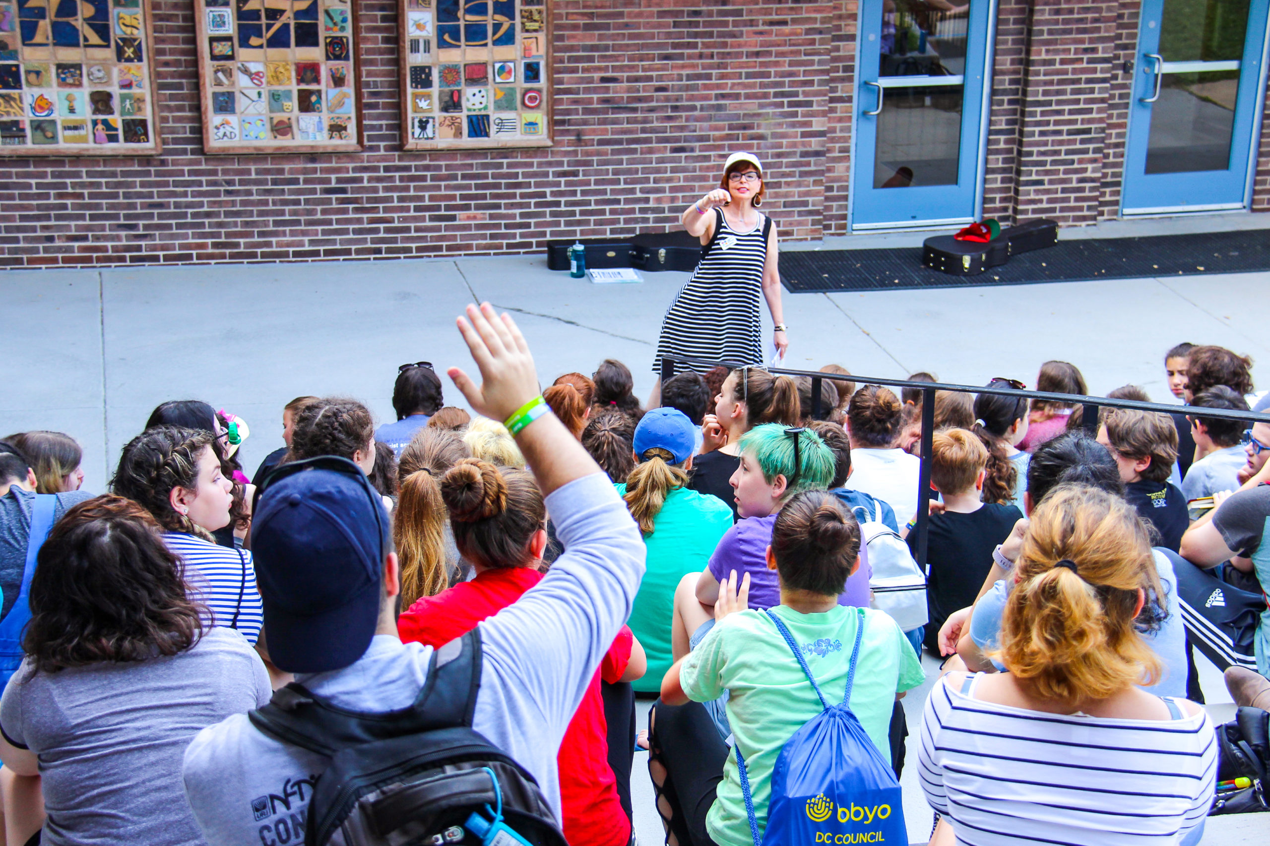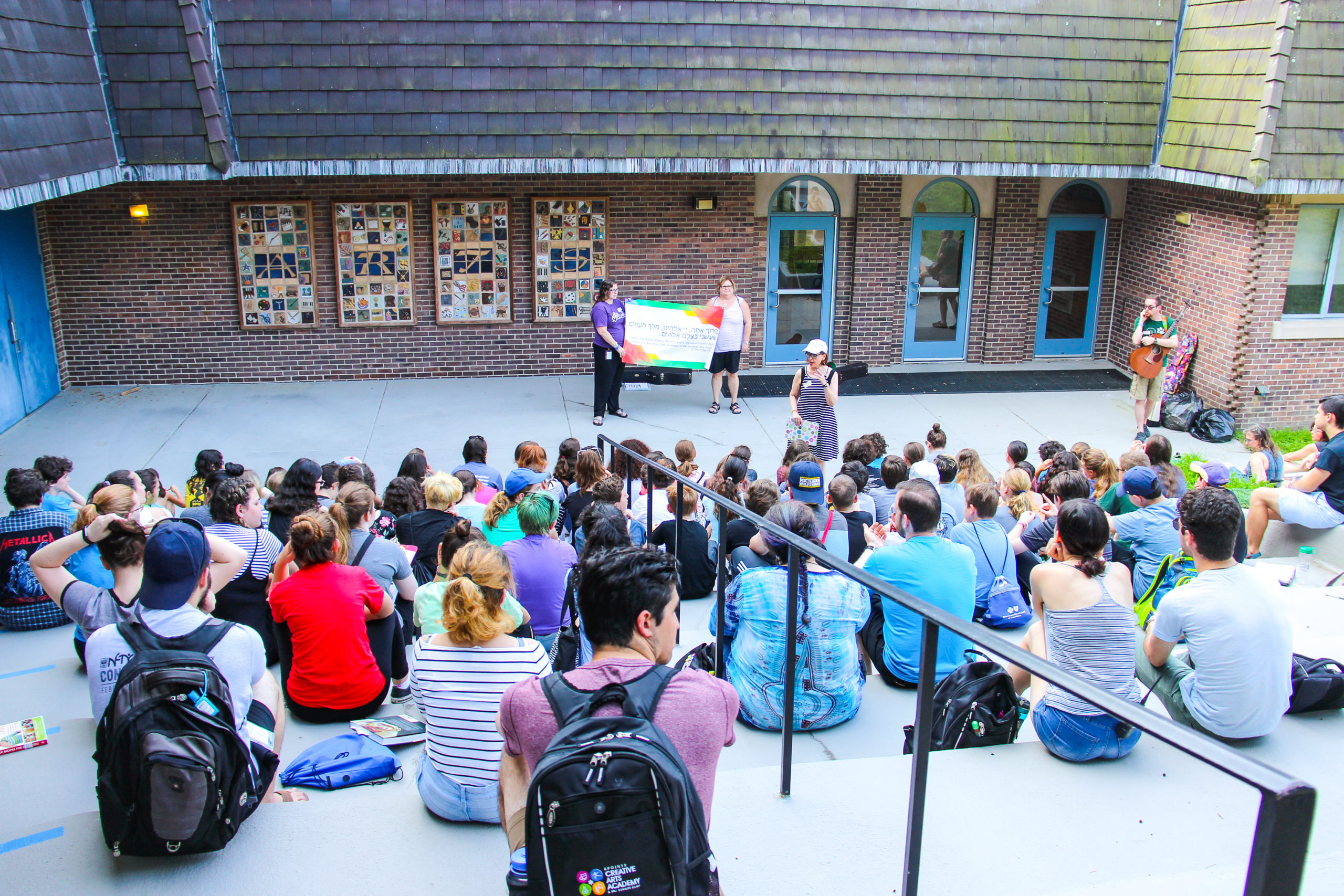 CAA’s day starts with a Mo Moment (short for “Modeh Ani,” the first prayer traditionally said in the morning). Sitting together on the steps outside of the art building, we sing our way through a few of our morning prayers, each in a beautiful musical setting, sometimes in five-part harmony. Each prayer has a balance of Hebrew and English lyrics that help us to connect the prayers to our own lives. Elohai N’shama is paired with “Awake my soul…,” a perfect entryway into prayer for sleepy tweens and teens.